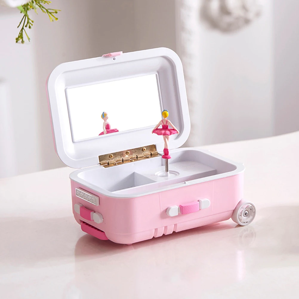 Mini Suitcase Jewelry Box with Mirror & Dancing Ballerina